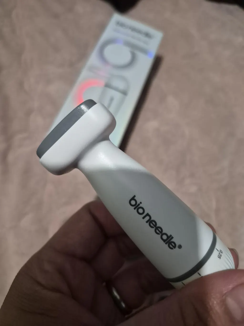 First, choose your needle gauge size. The Bio Needle Adjustable Derma Stamp Micro Needling Tool For Hair Growth has an adjustable needle dial ranging from 0.5mm - 2mm.